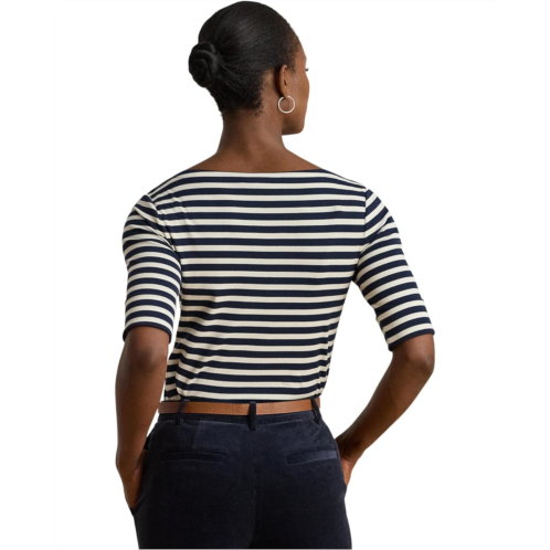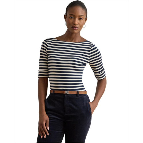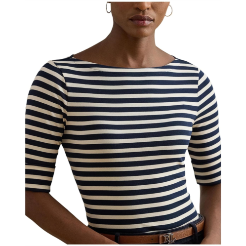[US] POLO Ralph Lauren Womens Lauren Ralph Lauren Petite Striped Stretch Cotton Boatneck Tee
