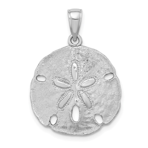 Material - Purity -14K Finish -Polished Length of Item -27 mm Plating -Rhodium Charm/Element Length -20.45 mm Charm/Element Thickness -2.3 mm Charm/Element Width -20.55 mm Width of Item -20.55 mm Texture -Textured Bail Width -5 mm Material - Color -White Bail Length -7 mm Metal Weight - 3.01 gram