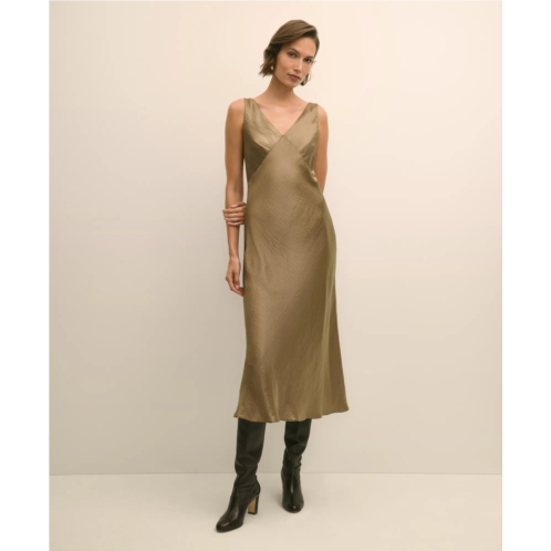 Your best festive attire is here: our slip dress crafted in a stunning bronze-gold hue that catches the light with subtle iridescence. Cut on the bias to be ultra flattering, it's the one-and-done piece you need for effortless occasion style.