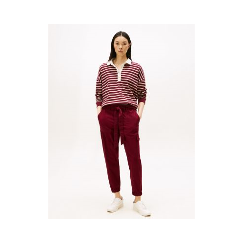 Tommy Hilfiger women's pant. Made from soft stretch cotton, these comfy high-waist joggers feature an elastic waist with a fixed, functional belt and sporty elastic cuffs. Easily dressed up or down, this versatile pair is ideal for travel or the office. Side pockets, a back welt pocket and handy cargo pockets at the legs add functionality to the flattering form.