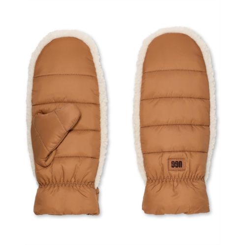 - Experience luxurious warmth wearing UGG Aw Uggfluff Mitten. These come in a slip-on construction with elasticated cuffs and feature a UGG graphic tape pull tab and a genuine leather UGG graphic logo.
