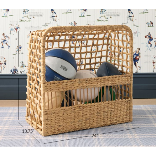 When organizing their space is the goal, give them an assist with our soccer-inspired storage bin. They’ll get a kick out of stashing their books, toys or gear in the sturdy net, woven of natural water hyacinth over an iron frame for enduring strength.