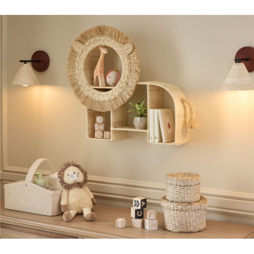 They’ll love showcasing the pride of their collection on our safari-inspired wall shelf. Decorated with a sisal mane and tail, the whimsical lion is artfully woven from natural rattan and provides four cubbies for displaying photos and keepsakes.