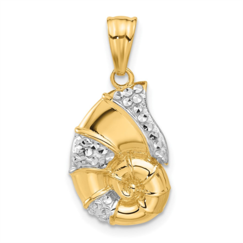 [US] Diamond2Deal 14k yellow gold with white rhodium polished diamond cut nautilus shell pendant