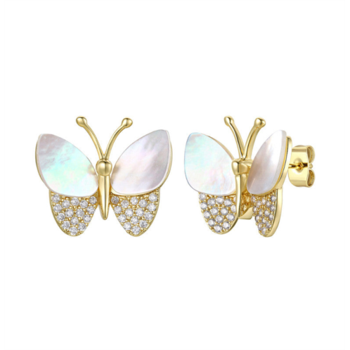 [US] Genevive ga sterling silver large 14k gold plated sterling silver with mother of pearl & diamond cubic zirconia butterfly stud earrings