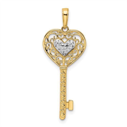 [US] Diamond2Deal 14k yellow gold white rhodium diamond-cut heart filigree key pendant
