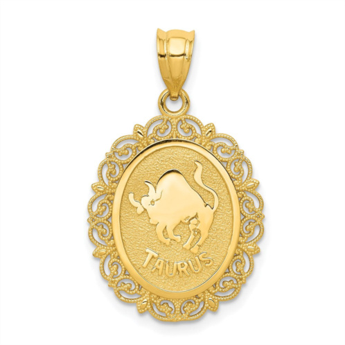 [US] Diamond2Deal 14k yellow gold solid satin polished taurus zodiac oval pendant