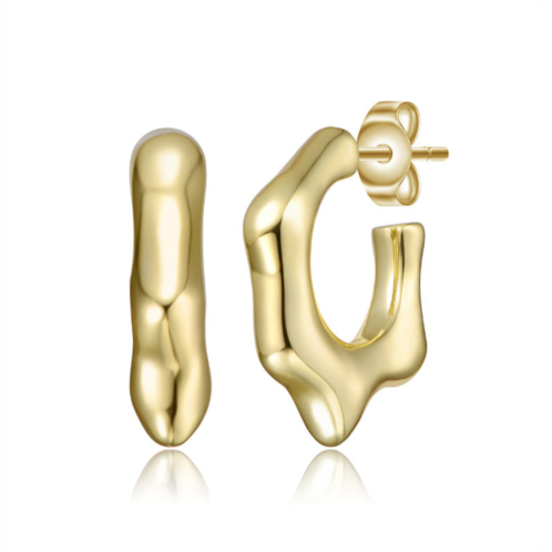 White Gold Plated Dripping Hoop Earrings. Dripping with artistic style and modern luxury, these brightly polished c-hoop earrings make a statement in total glamor, effortless, and easy to mix and match. These puffy 3/4 hoops feature dripping on the bottom inspired by paint and an appreciation for free form design. These striking open hoop earrings are crafted in durable white gold plating and are held in place by butterfly backs. These earrings are also available in 14K gold plated.Measurement 24mm