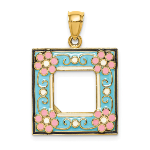 [US] Diamond2Deal 14k yellow gold enamel aqua floral picture frame charm
