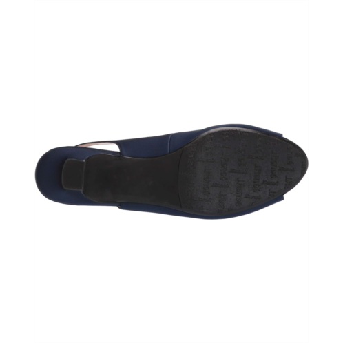 - Slingback strap offers an adjustable buckle closure at ankle.