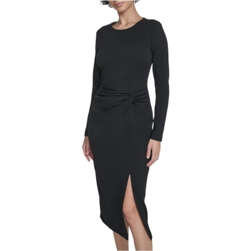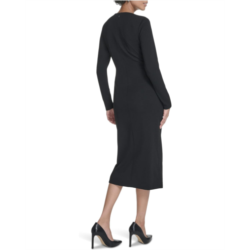 [US] Calvin Klein Long Sleeve Solid Rouched Midi