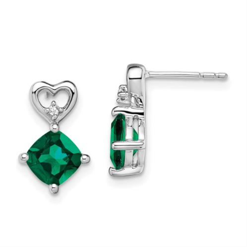 [US] Diamond2Deal 14k white gold created emerald and diamond heart earrings