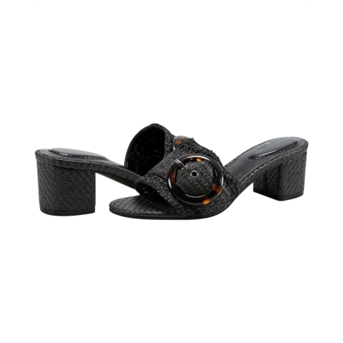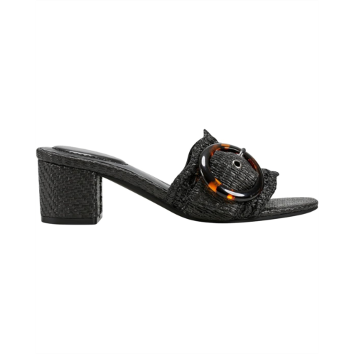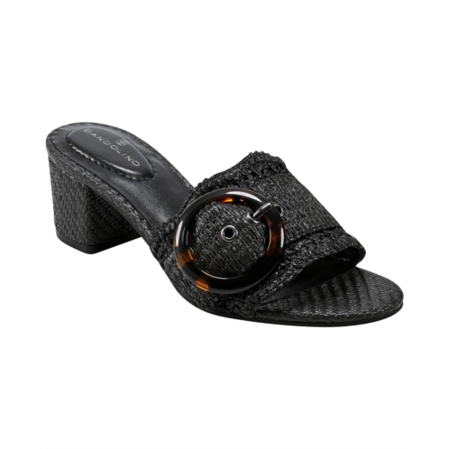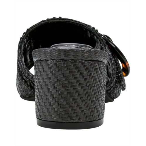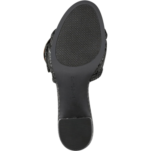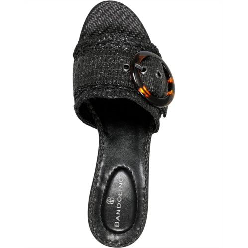 These elegant Bandolino Anni raffia crochet block heel slide sandals add instant style. They feature an on trend oversized buckle and beautiful scallop detail. This open almond toe silhouette slip-on has textile upper, man-made PU lining, foam insole, and synthetic rubber outsole construction.