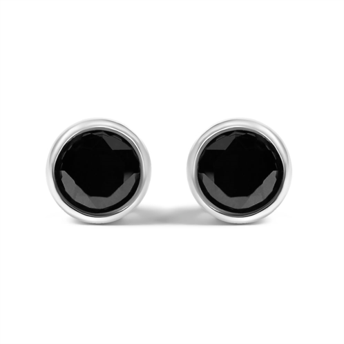 [US] Haus of Brilliance .925 sterling silver round brilliant-cut black diamond bezel-set stud earrings with screw backs