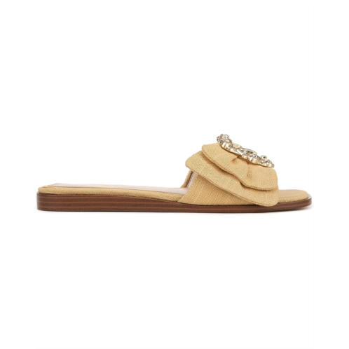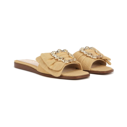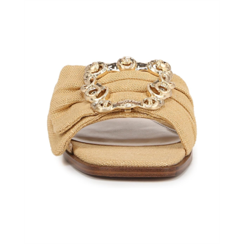 Featuring a gold-tone buckle with rhinestone detailing, the Sam Edelman Ivana flats are perfect to pair with your dresses and chic outfits. Easy to slip on and off, the synthetic lining of these flats makes them comfortable to wear all day. Whether you're getting ready for a casual date or for an event, these stylish sandals are a great choice.