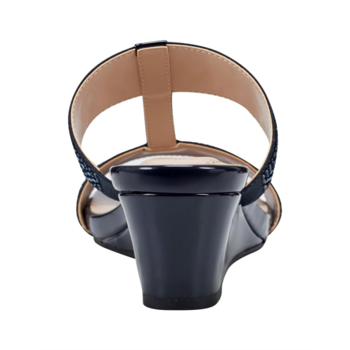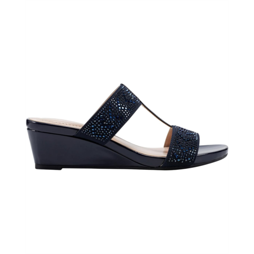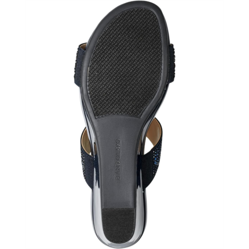 Get set for the endless fun wearing the Bandolino Iluvit. Crafted from PU upper, man-made lining, and foam insole, this pair of slip-on sandals features wedge heel, open round toe, crystal-encrusted double strap on the vamp, and brand detailing on the footbed.
