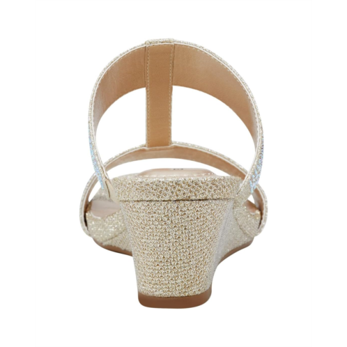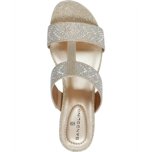 Get set for the endless fun wearing the Bandolino Iluvit. Crafted from PU upper, man-made lining, and foam insole, this pair of slip-on sandals features wedge heel, open round toe, crystal-encrusted double strap on the vamp, and brand detailing on the footbed.