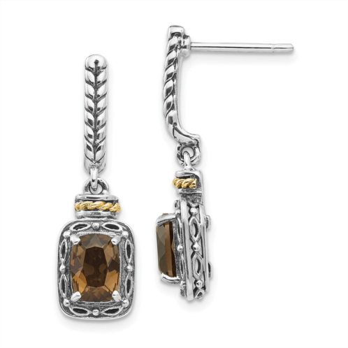 [US] Diamond2Deal sterling silver with 14k accent antiqued cushion smoky quartz dangle earrings