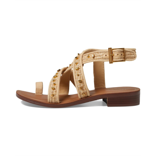 Bring a vivacious touch to your look by accessorizing with the Franco Sarto Ina Strappy Sandals. The slip-on style footwear has a strappy silhouette, adjustable buckle closure with toe loop, open round-toe design, and braided toe loop and metallic buckle detailing. The sandals have leather upper with the majority of leather responsibly sourced through Leather Working Group-audited factories and raffia upper made with partially recycled material, eco-conscious synthetic linings with soft + sustainable comfort, and cushioned footbed for a convenient prolonged wear.
