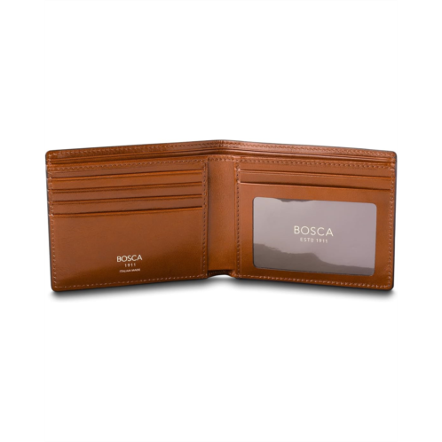 - Unlock elegance: Bosca Roma Italia Executive ID Wallet - Elevate your style, simplify your life! Featuring a sleek ID window for seamless access, five card slots for effortless organization, and a divided currency wall for hassle-free cash management. Crafted from luxurious full-grain cobbled leather, it boasts a single full-length bill compartment, six slots, and two vertical stash pockets, all secured with a convenient flap closure. With hand-stained pebble grain leather on the exterior and old leather on the interior, plus a durable nylon lining, this bifold wallet exudes sophistication while offering practicality and durability in every detail.