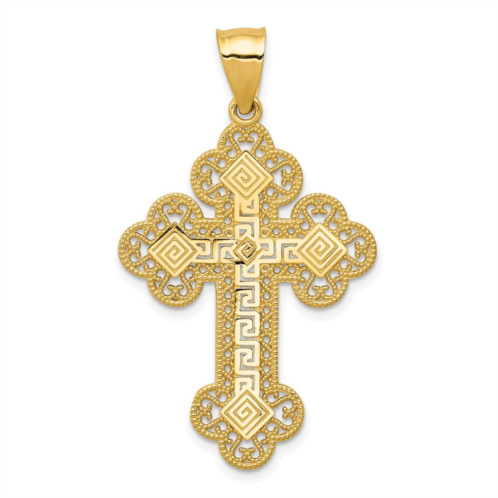 [US] Diamond2Deal 14k yellow gold budded greek key cross pendant