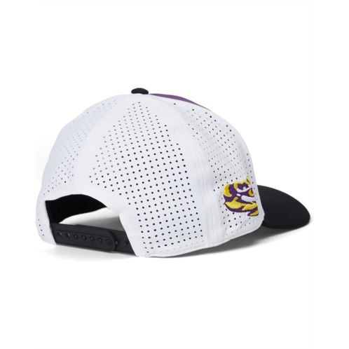 Comfort meets class with the Black Clover LSU Benchmark Adjustable Snapback Hat, part of the new exclusive Memory-Fit athletic headwear. This fitted two-tone hat features breathable stretch mesh and is adorned with a signature clover emblem in 3D. The unique Memory-Fit technology incorporates high-quality memory foam in the headband, offering a superior fit that molds to your head, enhanced comfort for long-term wear, increased sweat absorption, and exceptional wearability. Whether you're hitting the golf course, going for a run, or simply enjoying outdoor activities, this Memory-Fit headwear is the perfect choice to keep you cool, comfortable, and stylish all year long.