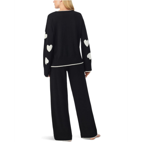 The Kate Spade New York Long Sleeve Sweater Knit Pullover Pj Set features a sweater knit fabrication that provides long-lasting comfort and warmth. The pullover top of the set is styled with an allover heart print, while the pull-on pants feature an elasticized waistband for a perfect fit. Perfect for lounging at home, this PJ set will keep you comfortable and cozy all day.