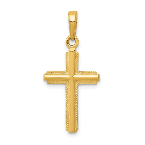 [US] Diamond2Deal 14k yellow gold polished cross with striped border pendant