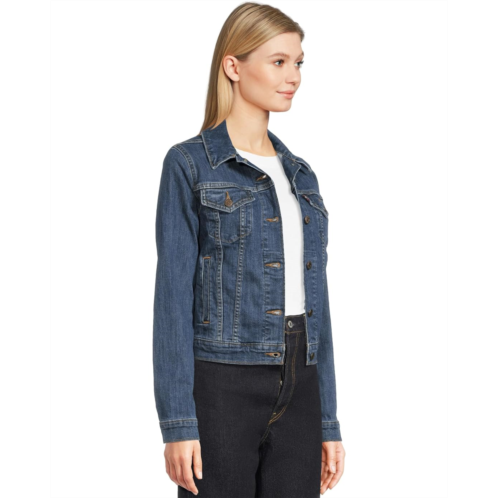 - Denim trucker jacket features tailored seams for a constructed finish.