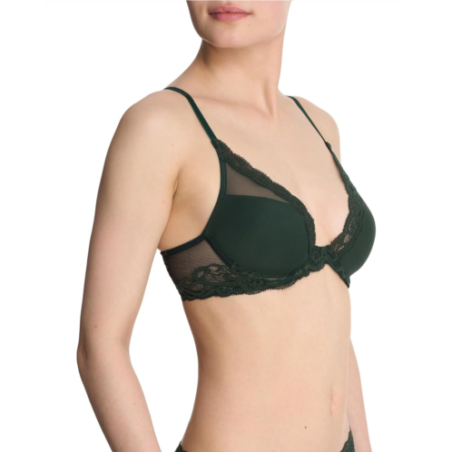 Fascinate in the retro Natori. Feathers Contour Plunge Bra. The underwire bra features demi cups with contour padding for a smooth, modest shape.