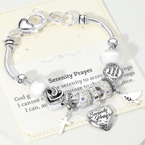 [US] FASHNZFAB serenity prayer heart cross multi bead bracelet antique silver multi