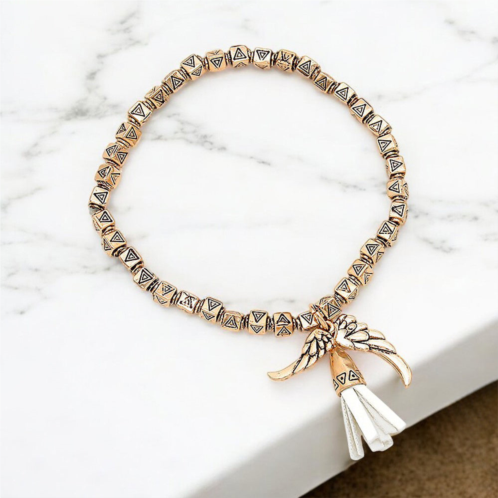 [US] FASHNZFAB faux suede tassel & wing charm aztec metal bead stretch bracelet