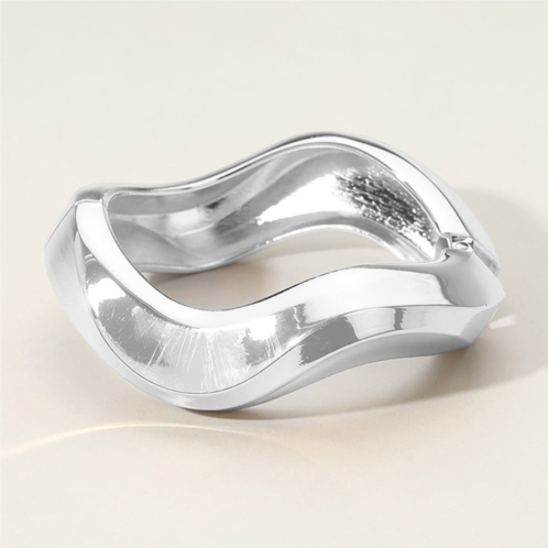 [US] FASHNZFAB metal wavy hinged bangle bracelet rhodium
