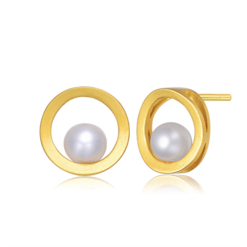 [US] Genevive sterling silver 14k gold plated with genuine freshwater round pearl stud earrings