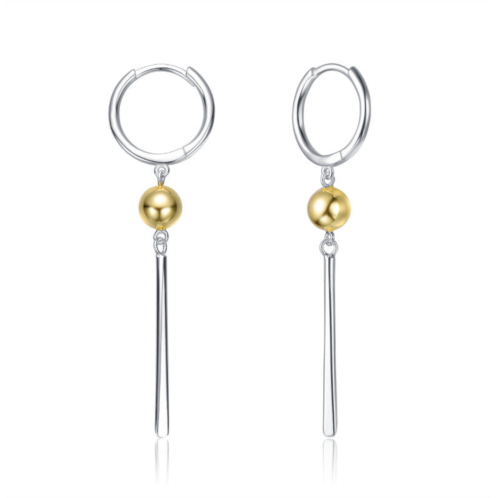 [US] Genevive sterling silver two-tone sphere and sleek bars drop earrings