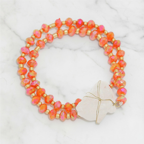 [US] FASHNZFAB raw quartz accented bead strand wrap stretch bracelet
