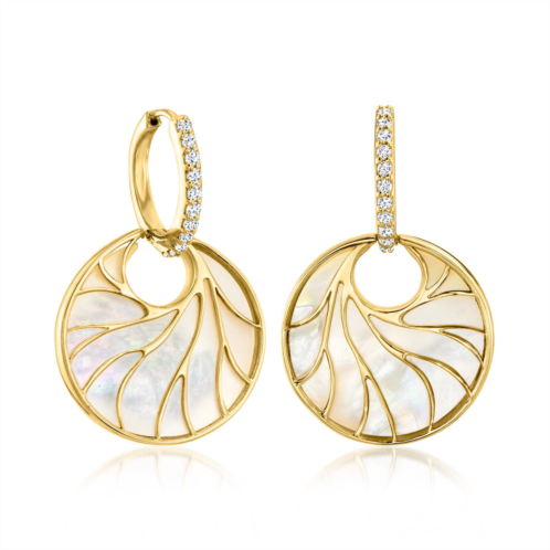 [US] Ross-Simons mother-of-pearl and . white topaz circle hoop drop earrings in 18kt gold over sterling