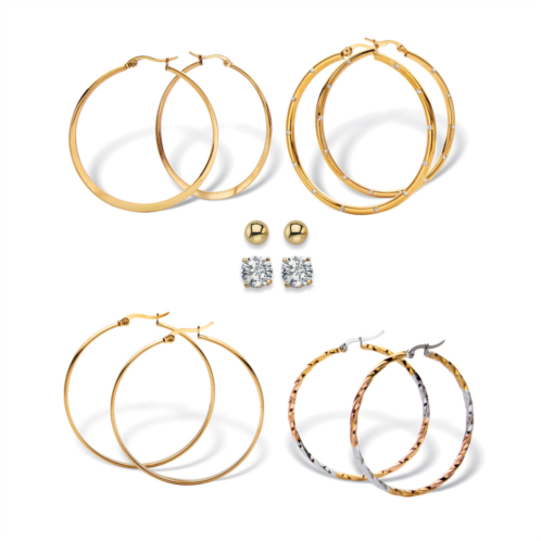 [US] PalmBeach Jewelry 4 cttw. 6-pair cz stud & hoop set goldtone & gold ion plated stainless steel