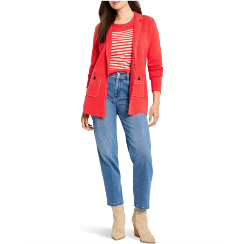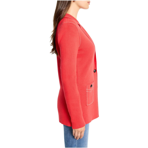 A little contrast stitching goes a long way towards creating the perfect 9-5 (or anytime) knit blazer. Crafted in a sophisticated Milano stitch that holds its shape beautifully and designed with a substantial, refined feel that won't stretch out, the NIC+ZOE Constrast Stitch Elegant Knit Blazer delivers the structure of a classic blazer with the comfort of a knit. Clean edges and thoughtful contrast stitching add a modern, tailored finish. It is styled with long sleeves, a single button front closure, a notch collar, and a straight hem. Perfect for elevating your work wardrobe (and staying cozy while you're there), this knit jacket is the versatile layer that seamlessly blends ease and elegance.