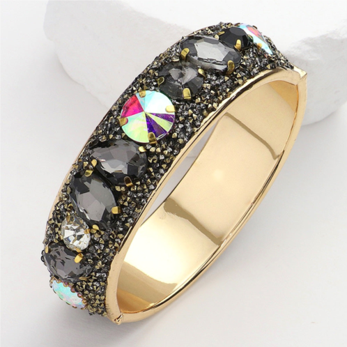 [US] FASHNZFAB sparkly stone embellished hinged bangle bracelet black diamond gold