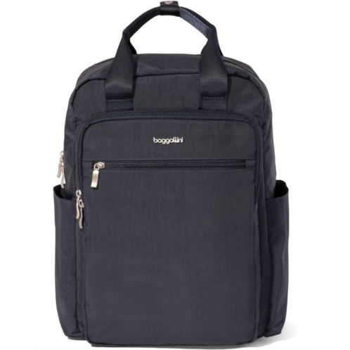 - Upgrade your daily routine carrying the Baggallini Commuter Laptop Backpack, crafted from durable nylon with a chic, grown-up design. Stay effortlessly organized with two spacious compartments, thirteen smartly placed pockets, a padded laptop pocket, a tablet sleeve, and a scratch-resistant phone pocket. The interior privacy pocket keeps essentials secure, while the top carry handle and built-in luggage sleeve ensure travel ease. Perfect for workdays or getaways, this stylish backpack blends functionality with sophistication, safeguarding your gadgets and accessories while keeping everything within reach.