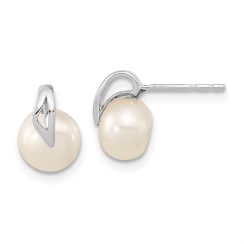 [US] Diamond2Deal 14k white gold 7-8mm button freshwater cultured pearl stud earrings