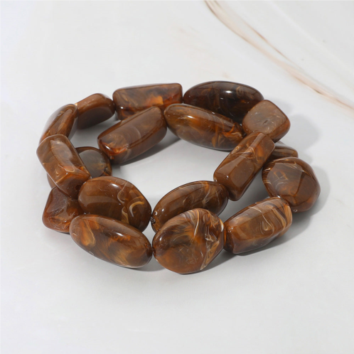 [US] FASHNZFAB 2pcs - chunky marbled resin multi shape pebble beaded stretch multi layered bracelets - brown