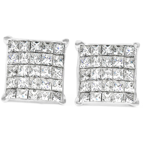 Womens earrings features princess cut natural diamonds. The diamonds are set in invisible set in solid 10k white gold with screw back settings. These have wow and flash, add them to your jeweler earring studs collection today!
