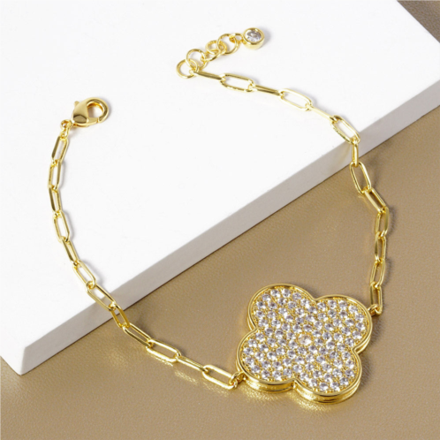 [US] FASHNZFAB gold dipped stone paved quatrefoil charm pointed paperclip chain bracelet