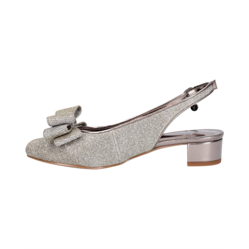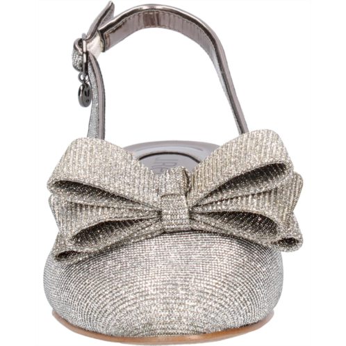 - Glittering textile upper with slingback design and huge bow-tie accent on the foot.