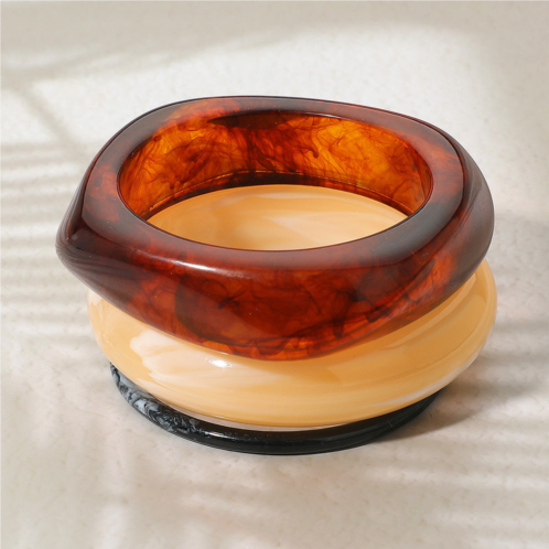 [US] FASHNZFAB 3pcs - marbled chunky resin stackable bangle bracelets brown neutral