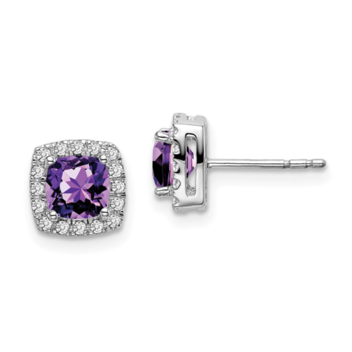 [US] Diamond2Deal 14k white gold cushion amethyst and diamond halo stud earrings