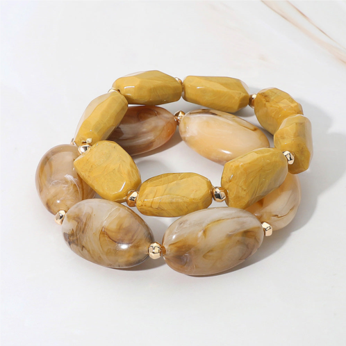 [US] FASHNZFAB 2pcs - chunky oval pebble beaded stretch multi layered bracelets - neutral