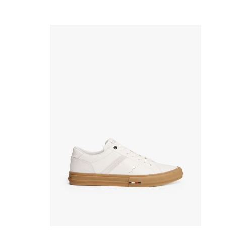 Tommy Hilfiger men's sneaker. For the minimalist, these classic leather low-top sneakers are designed with a lace-up vamp and subtle branding. We finished this pair with a heat-treated, vulcanized sole for added flex and durability.